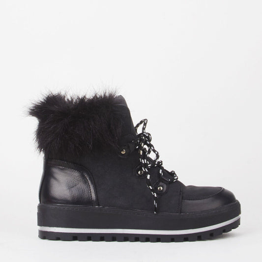 Ladies Womens Grip Sole Ski Moon Style Lace Up Faux Fur Collar Ankle Boots Shoes