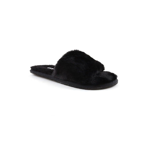 Ladies Womens Genuine Faux Fur Slippers Mules Non Slip Rubber Hard Sole Size