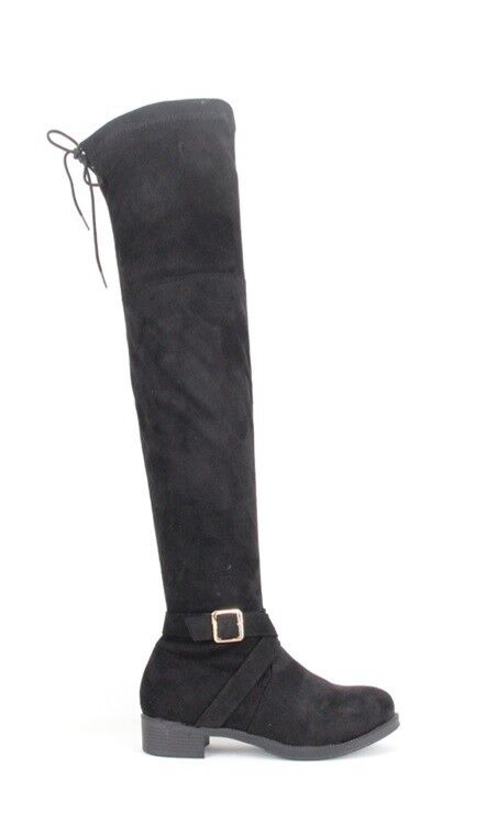 LADIES WOMENS OVER THE KNEE HIGH LOW HEEL BOOTS SHOES ZIP STRETCH FLAT SIZE