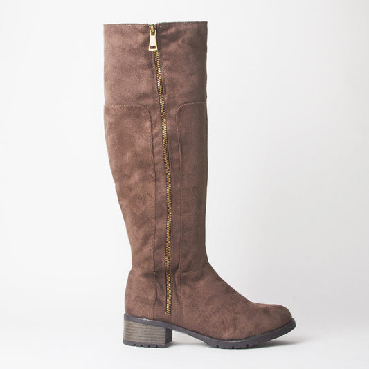 LADIES WOMENS GRIP SOLE BLOCK HEEL KNEE HIGH ZIP RIDING STYLE BOOTS SHOES SIZE