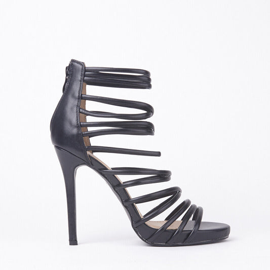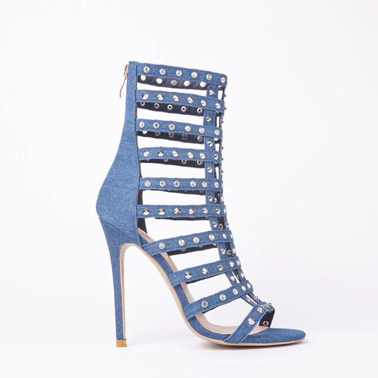 Tammy Stud Caged Heeled Sandals With Diamante Detail