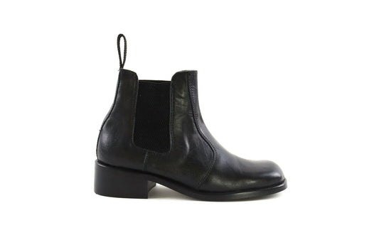 WOMENS LADIES BLACK REAL LEATHER FLAT HEEL CHELSEA ELASTICATED ANKLE BOOTS SIZE