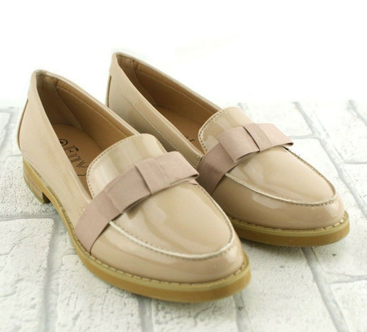 Ladies Womens Faux Nude Patent Leather Penny Loafer Moccasin Slip On Shoes Size