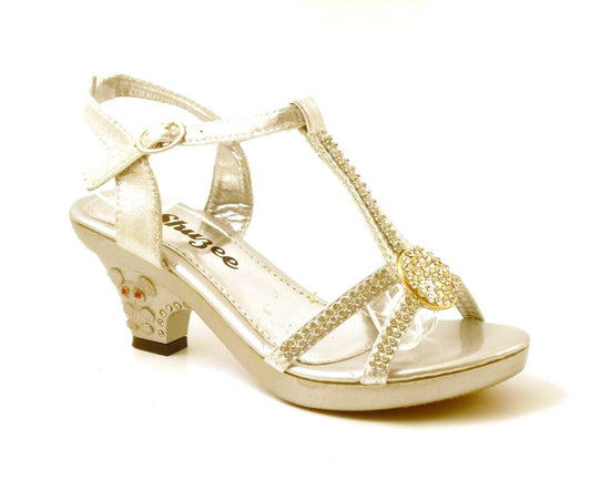 GIRLS KIDS LOW HEEL DIAMANTE TRIM WEDDING EVENING PARTY SANDALS