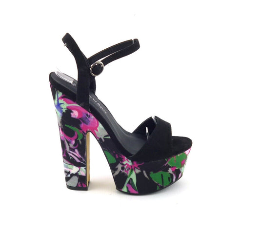 LADIES WOMENS PEEP TOE BLOCK HEEL FLORAL PRINT SUMMER EVENING SANDALS SHOES SIZE