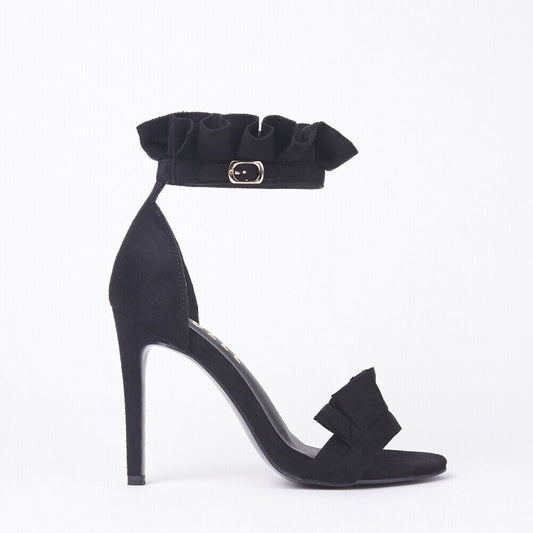 LADIES WOMENS FRILL DETAIL HIGH HEEL STILLETTO OPEN PEEP TOE SANDALS SHOES SIZE