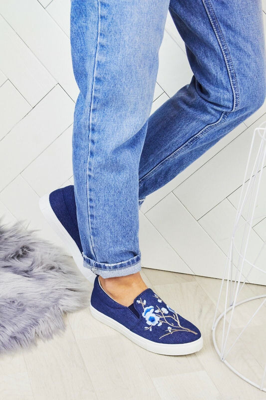 Ladies Womens Embroided Flat Rubber Sole Skater Pumps Sneaker Trainers Shoes