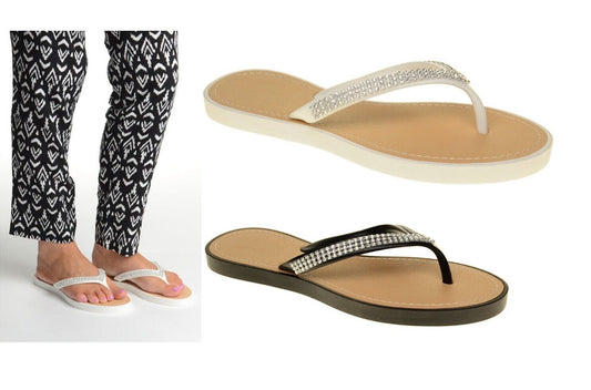 LADIES WOMENS DIAMANTE DETAIL THONG FLIP FLOPS SUMMER SANDALS BEACH SHOES SIZE
