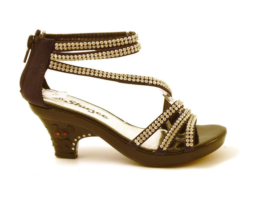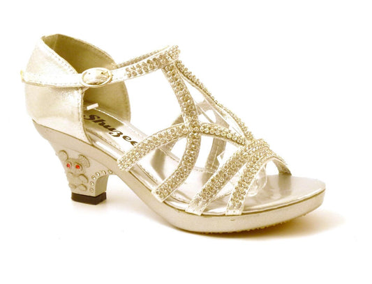 GIRLS KIDS LOW HEEL DIAMANTE TRIM WEDDING BRIDESMAID SANDALS PUMPS SHOES SIZE