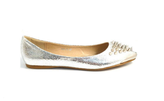 Ladies Stud Spike Flat Pointed Toe Flat Block Heel Pumps Shoes