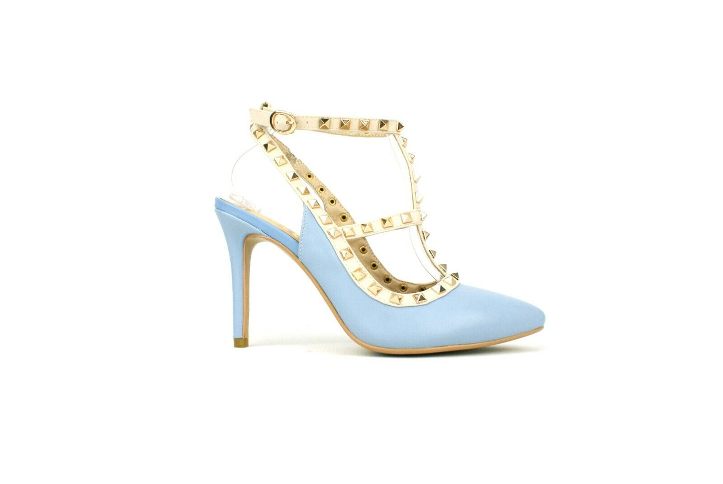 LADIES WOMENS STUD DETAIL HIGH HEEL STILLETTO POINTED TOE SLING BACK SHOES SIZE